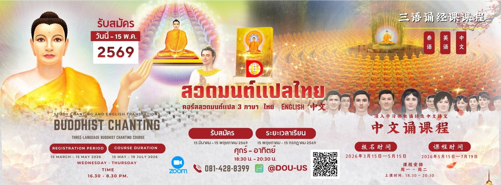 ติดต่อวันอาทิตย์และงานบุญใหญ่ ที่เสา N26 หรือเสา P13 หน้าห้องแก้วสารพัดนึก 1 สภาธรรมกายสากล วัดพระธรรมกาย จ.ปทุมธานี